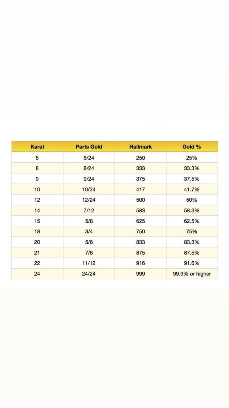 TABLA PUREZA DEL ORO